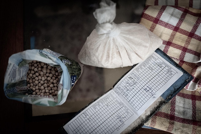 Fotografía de la carta de racionamiento con las raciones de frijoles y arroz que recibió Alina en el último trimestre.